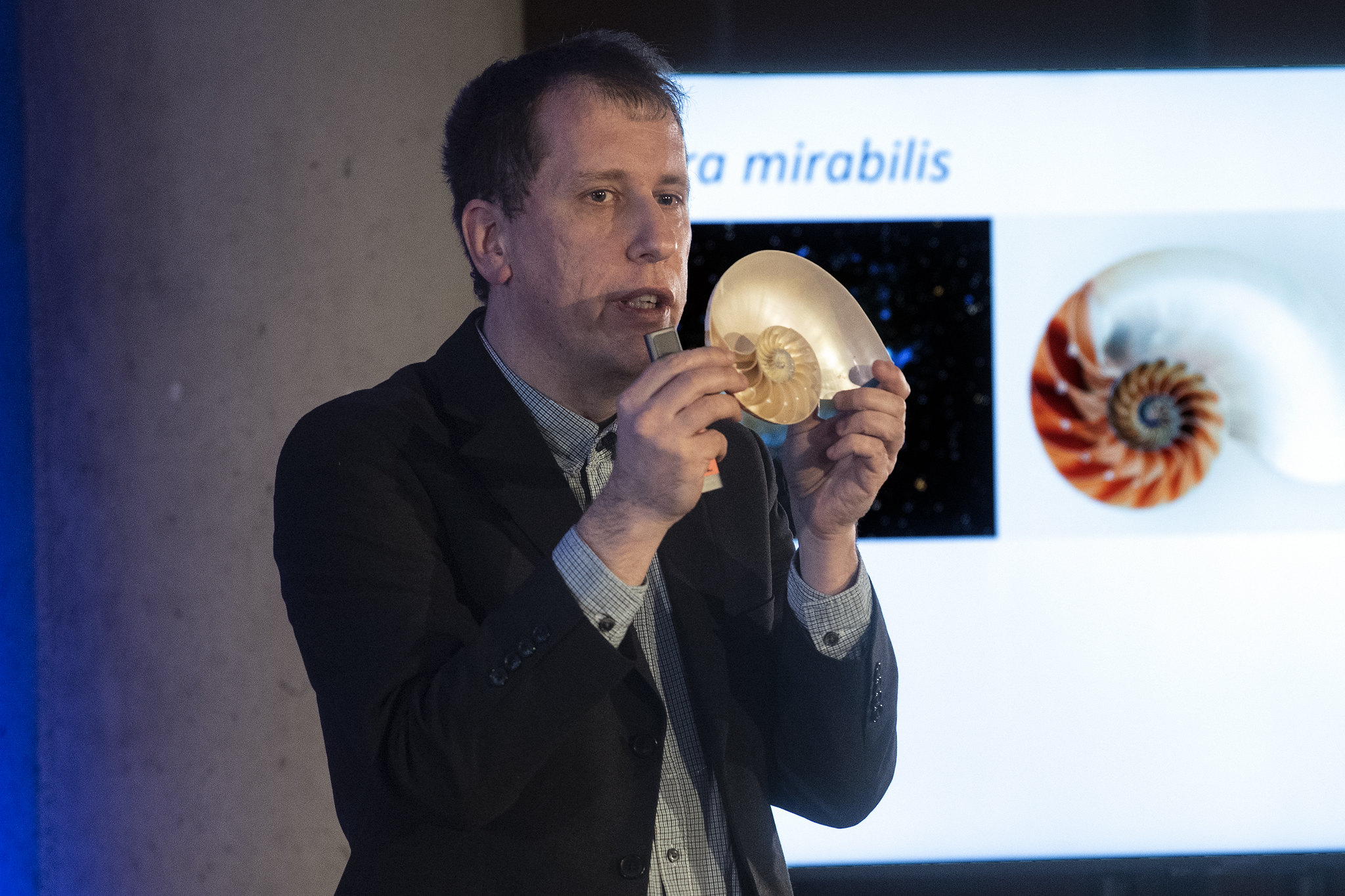 Sipos András Árpád előadása elemi geometriai szabályokat követő rendszerekben keletkező összetett geometriai formákat mutatott be. A tudománytörténetben híres példa a Jacob Bernoulli által csodálatos spirálnak (spira mirabilis) nevezett logaritmikus spirál, amely a csigaháztól a spirális galaxisok és örvénylő ciklonok alakjáig számtalan helyen felbukkan a természetben. A spirál egy növekedési folyamat eredménye, az e folyamatot meghatározó geometriai kényszerek evolúciós szerepét a csigaházak példáján keresztül mutatta be az előadás.