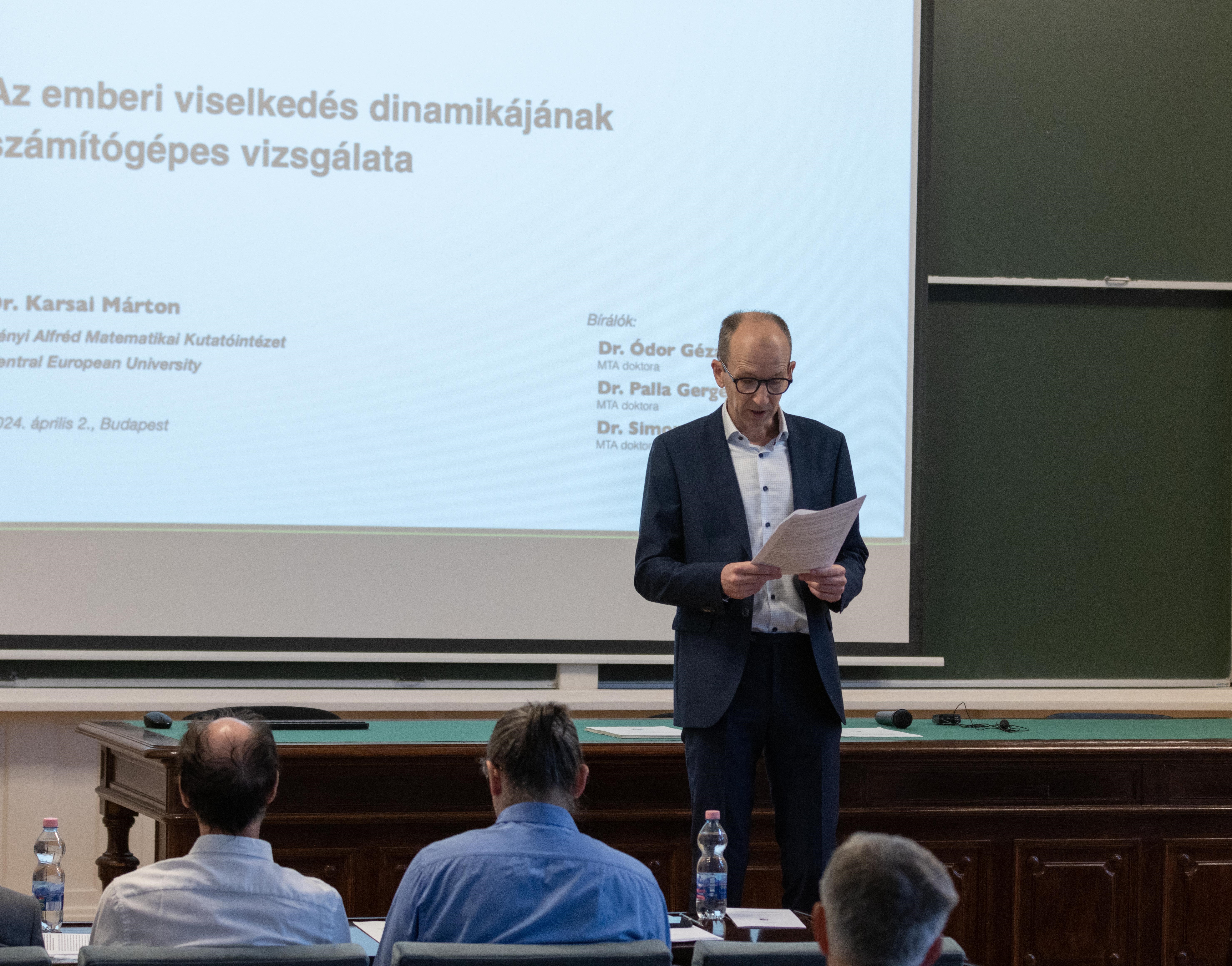 2024. április 2.-án került sor Karsai Márton: Az emberi viselkedés dinamikájának számítógépes vizsgálata című MTA doktori munkájának nyilvános vitájára, mely 35/34 pontos eredménnyel zárult.