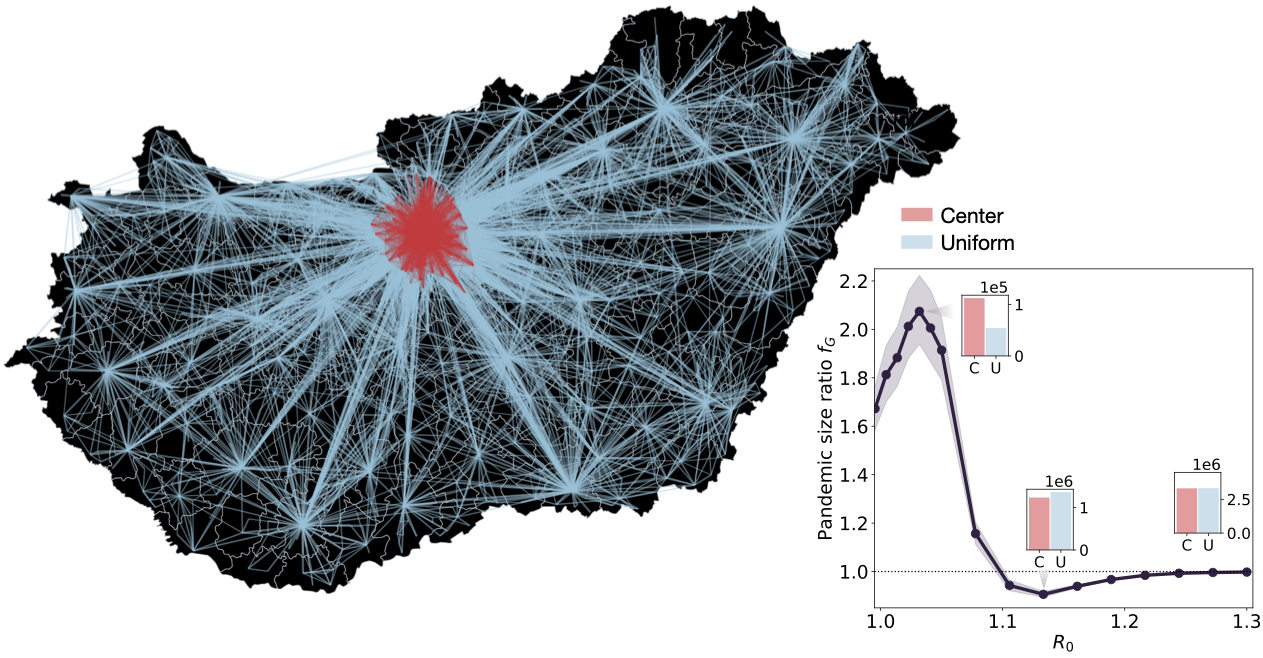 A kutatás során ezt a feltevést kérdőjelezik meg, és demonstrálják, hogy az a járvány, ami a városok hálózatának legszorosabban összekapcsolt részéből indul, hosszú távon nem mindig vezet több fertőzötthöz. Ellenben, ha a betegségnek nagy a fertőzőképessége, akkor egy járvány, ami véletlenszerűen kiválasztott városokból indul, akár nagyobb populációt is megfertőzhet. Eredményeiket magyar mobilitási és járványügyi adatok, illetve matematikai bizonyítások is alátámasztják.